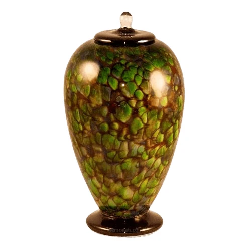 The Amazon Green Glass Cremation Urn is hand blown one at a time. Each piece is unique and made for a special person.