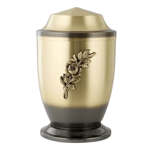 The Antique Rose Cremation Urn is made of metal. This urn features a stunning, gold toned rose and antique accents. The modern shape and antique look offer a unique and unforgettable combination. This beautiful vessel will become a wonderful final resting place for all eternity.