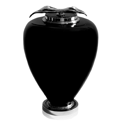 The Black Pearls Glass Cremation Urn is made from a brass with a elegant glass coating. The lid is formed by a true artist and finished with white pearls. The urn will create a peaceful memory for eternity and is a marvelous piece of art. The urn is hand blown one at a time and there will be imperfections in the glass just as a natural process.