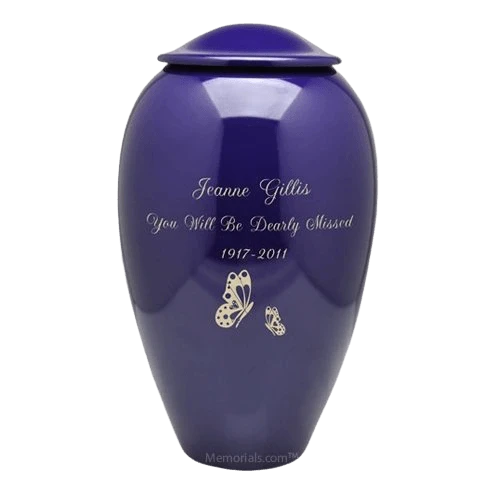 The Classic Purple Metal Cremation Urn is created from finest brass with a very delicate finish. The urns have a fantastic lacquer coating to preserve the brilliance. This urn will create a peaceful memory for eternity for your loved one.