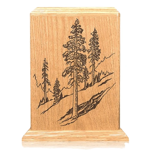 The Evergreen Oak Wood Cremation Urn is made from oak and other laser etched hardwoods. A unique urn will create a peaceful memory for eternity for you and your loved ones.