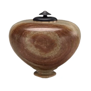 The Lamandarin African Cremation Urn is hand turned on a lathe from finest green and brown stone with a bronze lid. The urn is crafted from a 40 – 60 pound solid piece of alabaster and requires an average of 25 – 40 hours to turn, shape, sand, buff and finish. Due to the nature of alabaster, patterns and colors will vary.