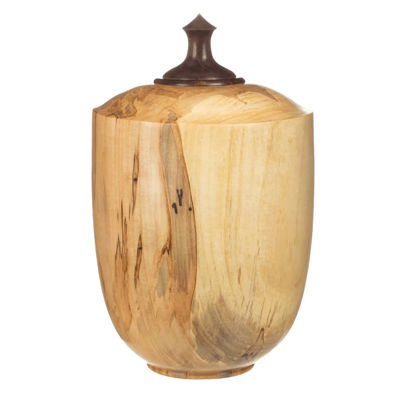 The Nadie Wood Cremation Urn is handmade from maple wood by one of our talented wood artists. The wood urn is crafted on a hand turned lathe from logs of native woods. Only solid hardwood logs are used they are hollowed out to make this elegant cremation urn. To finish the urn urethane oil is used which penetrates the wood rather than just putting a finish on top of the wood. No two wood urns will ever be the same, because the wood color and texture will always differ. A truly one of a kind unique urn for your loved one.