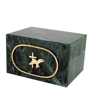 The Dark Green Marble Cremation Urn is assembled from real natural quarried stone. The urn has a felt bottom to protect the surface were the urn rests on. This wonderful natural stone urn will create a dignified resting place for eternity to come.
