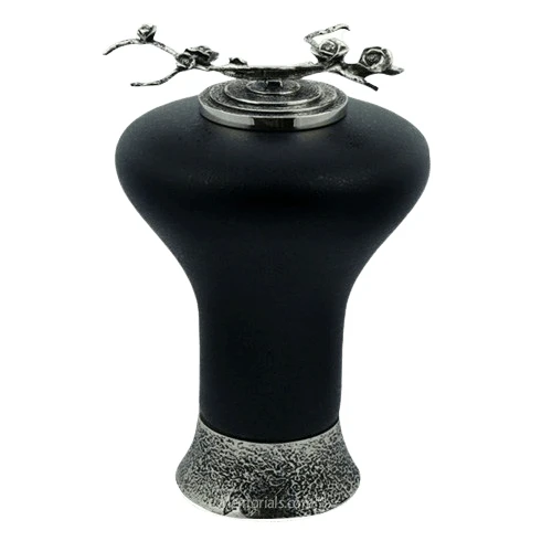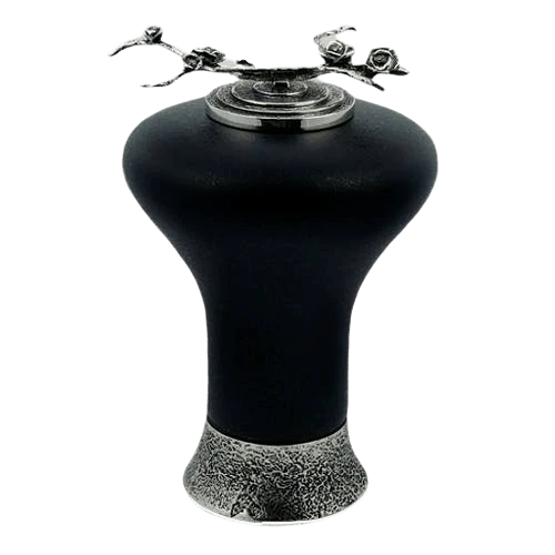 The Onyx Rose Glass Cremation Urn is made from glass and features chromed zamak ornaments. This beautiful urn is an unique vessel, which is handmade by a true artist. A wonderful final peaceful resting place for a dearly loved one.