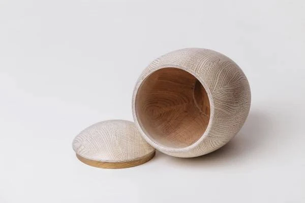 The Purity Wooden Urn is handmade from oak by one of our talented wood artists. The wood urn is crafted on a hand turned lathe from logs of native woods. Only solid hardwood logs are used they are hollowed out to make this elegant cremation urn. To finish the urn transparent oil is used which penetrates the wood rather than just putting a finish on top of the wood. No two wood urns will ever be the same, because the wood color and texture will always differ. A truly one of a kind unique urn for your loved one.