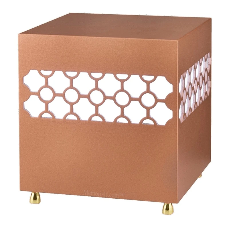 The Sleek Light Cremation Urn is made in Italy by highly skilled artisans. This gorgeous cremation urn made of sheet metal and features an intricate and dynamic cut out pattern on the top and bottom. The pattern is wonderfully complimented by the deep black color and smooth texture. This exquisite vessel will offer a truly elegant and unforgettable remembrance.