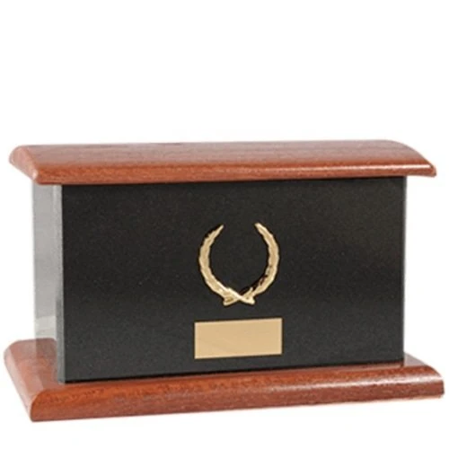 The Stonewood Nero Cremation Urn is crafted from black granite with mahogany stained oak. The unique style of this urn will create a lasting remembrance of your loved one.