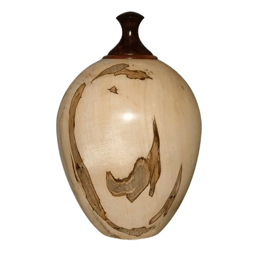 The Tiger Wood Cremation Urn is handmade from one of our wood artists the wood is “Ambrosia Maple Wood”. The wood urn is crafted on a hand turned lathe from logs of native woods. Only solid hardwood logs are used they are hollowed out to make this elegant cremation urn. To finish the urn urethane oil is used which penetrates the wood rather than just putting a finish on top of the wood. No two wood urns will ever be the same, because the wood color and texture will always differ. A truly one of a kind unique urn for your loved one.